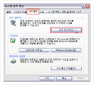 3. 하드웨어 탭으로 이동 후, [장치관리자(D)]를 선택하세요.