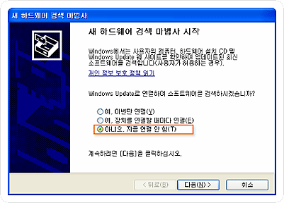 ③ 새 하드웨어 검색 마법사가 자동으로 실행됩니다.